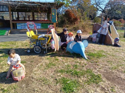 お弁当は子どもたちのリクエストに応えて、わんぱく広場で食べました。「ポテトが入ってた!」「唐揚げおいしい!」と喜んで食べていました。風もなく日差しも暖かかったです。