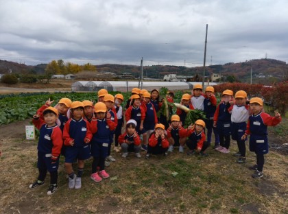 今日は、畑に行って大根を収穫しました。生長を観察している中で収穫をとても楽しみにしていたほし組さん。「これ大きい!」「食べるの楽しみ!」と自分で大根を選んでいました。園庭ではだるまさんが転んだをみんなで楽しんでいました。寒い中でもたくさん身体を動かして元気いっぱいな子どもたち。