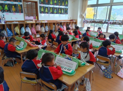 ピアニカでは、発表会に向けて楽譜を見ずに前に出て弾く練習をしました。少しずつ覚えて弾ける子も増えてきて、発表会に向けて期待を持つ姿も見られます。今後も楽しく活動できるよう後押しして参ります。