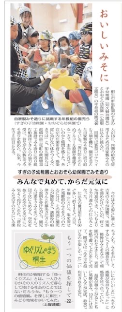 今日仕込んだ味噌の発酵に最低でも10ヶ月かかるそうです。指折り数えて、卒園前に開封できると分かり「早く食べたいな」「楽しみ!」と期待を高めていました。今日の活動を振り返りながら、出来上がりを楽しみに見守って参ります。 ◯年長組 担任◯