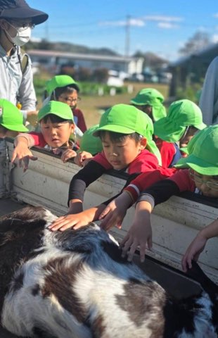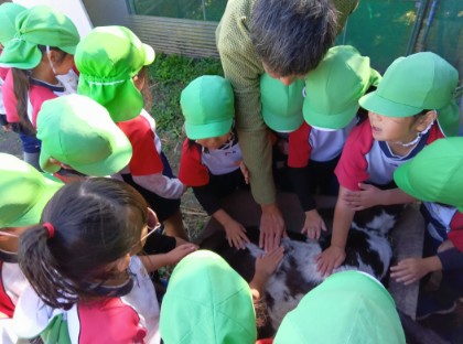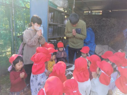 今日は園長先生に関わってもらって、ヤギのそらくんの死を教えてもらいました。そらくんに優しく触った後、『天国でも元気でね。』としっかりお祈りもできた子どもたちでした。
