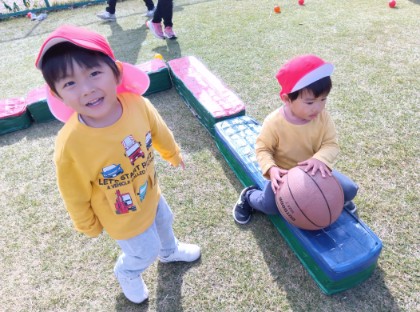 今日は、わんぱく広場で遊びました。牛乳パックの平均台でのんびり座っていたり、サッカーボールを追いかけて元気に走ったりのびのびと過ごしていたにじ組さん。すばる組さん、ひかり組さんとも関わることができ、一緒に遊べて楽しそうでした。色々な遊びを楽しめるよう、関わっていきます。