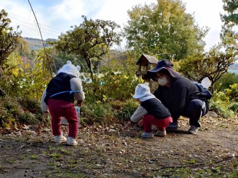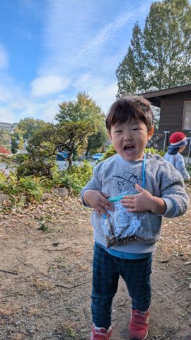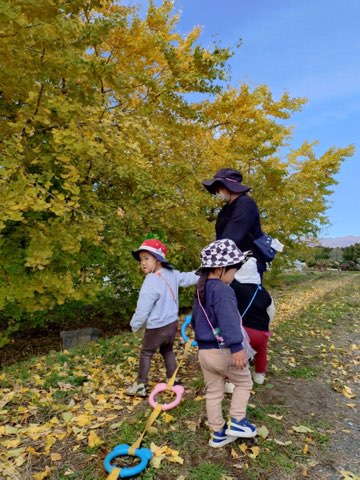 今日は手作りバックを持って秋の実拾いに出かけた子どもたち。