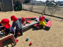 最後にわんぱく広場でのびのび過ごしました。今日はボールプールにパイプからボールを入れる遊びが盛り上がっていました。