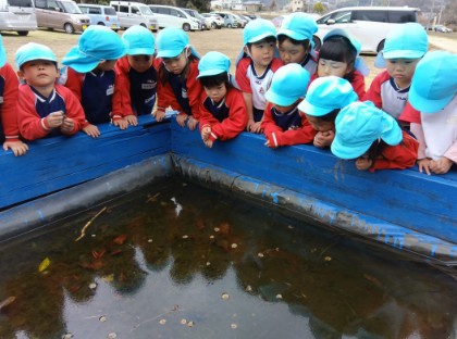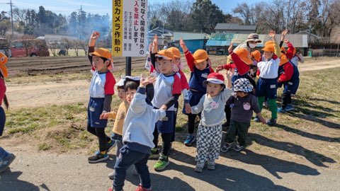 朝一番で避難訓練がありました。放送をよく聞いて速やかにテーブルの下に隠れる様子が見られ、東日本大震災の話も集中して聞く子が多くいました。その後はつき組にお邪魔して誕生会を行いました。パネルシアターでは園庭や動物ランド、畑に関連したもので「つばきだ!」「さつまいもと大根がある!」とかくれんぼしている動物や野菜を当てることを楽しんでいました。