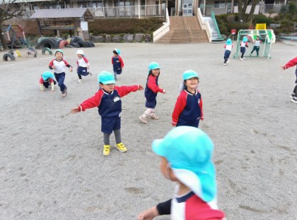 今日は園庭で自由遊びをした後、鬼ごっこをしました。できる鬼ごっこも増えてきて、こおり鬼やバナナ鬼、色鬼等、色々な鬼ごっこを楽しんでいます。