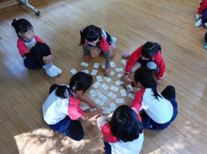 室内に入りこの後の予定を確認しました。今日は午後に図書館に行く予定でしたが、一人の子が「今日は午後から雨が降るらしいよ」と教えてくれました。「雨だと行けないよ」「合羽を着て行く?」「合羽を着ても絵本は濡れちゃうよ」と色々な意見が出ましたが、最終的に午前の活動と入れ替えることになりました。図書館では好きな絵本を先生に読んでもらったり、平仮名が読める子は自分たちで読んで楽しめました。