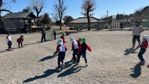 午後も2月のマラソン大会に向けて、コースを確認する為、そら組と走ったり、その後は園庭でサッカーをしたりなど、寒さに負けずに取り組めています。