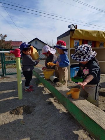 今日は朝から気持ちの良いお天気でしたので久しぶりに砂場遊びを楽しみました。