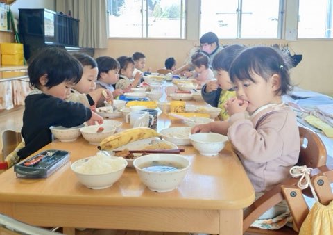 そしてお楽しみの給食!大好きなチキンをモリモリ食べる姿がとても頼もしかったです。沢山遊んで沢山食べる!元気いっぱいのたんぽぽ組さんでした。